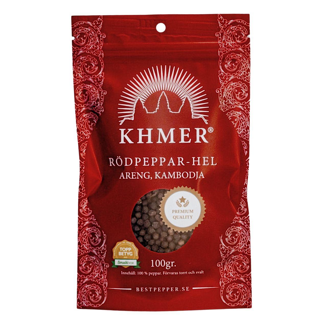 KHMER Areng rödpeppar är en aromatisk peppar från Kambodja med fyllig smak och en tydlig eftersmak med inslag av citrus. Den passar till många typer av rätter och fungerar lika bra till kött, fisk och fågel som till pasta, gratänger och andra varma rätter.